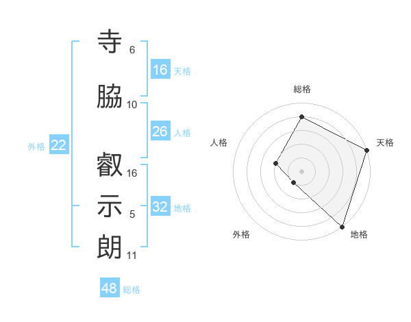 寺脇 叡示朗さんの天格は16画の5点!