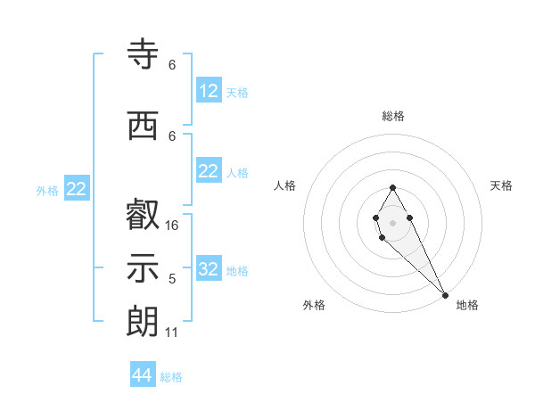寺西 叡示朗さんを姓名の画数から五運を鑑定
