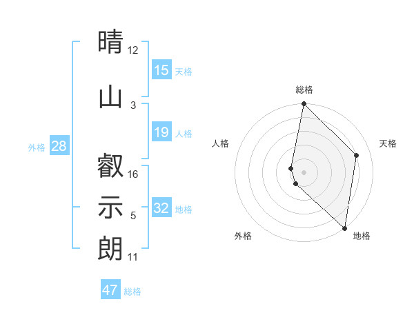 晴山 叡示朗さんを姓名の画数から五運を鑑定