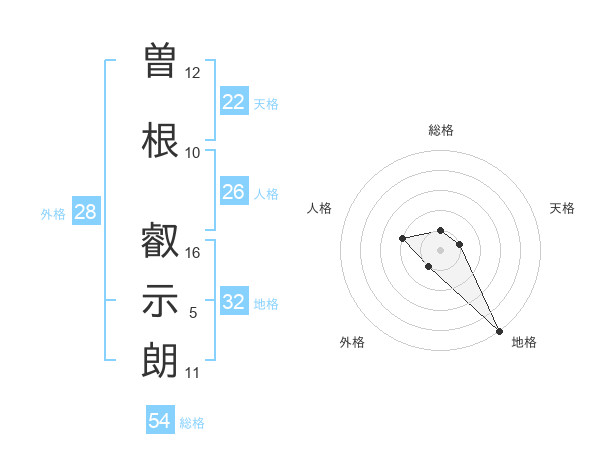 曽根 叡示朗さんを姓名の画数から五運を鑑定