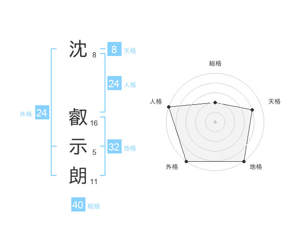 沈 叡示朗さんの外格は24画の5点!