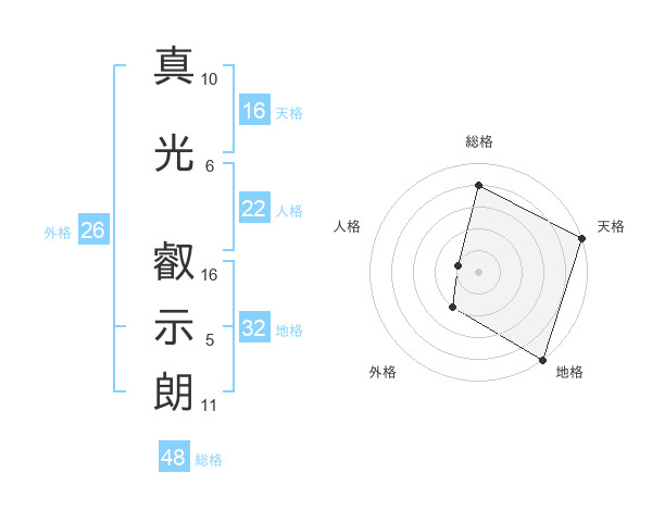 真光 叡示朗さんを姓名の画数から五運を鑑定