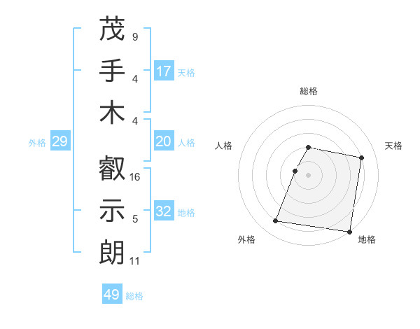 茂手木 叡示朗さんを姓名の画数から五運を鑑定