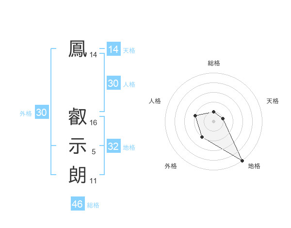鳳 叡示朗さんを姓名の画数から五運を鑑定