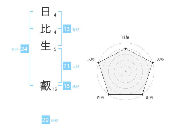 日比生 叡さんの総格は29画の4点!