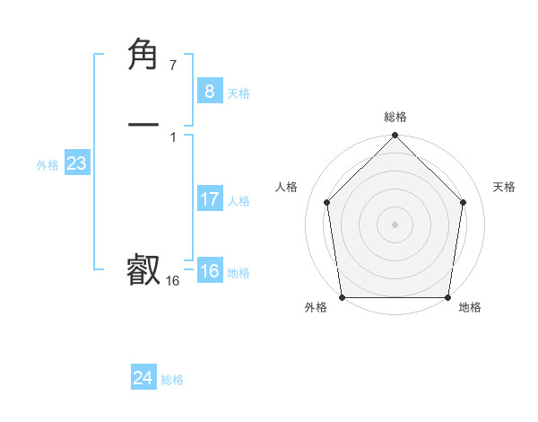 角一 叡さんの外格は23画の5点!
