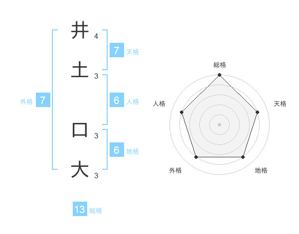 井土 口大さんの総格は13画の5点!