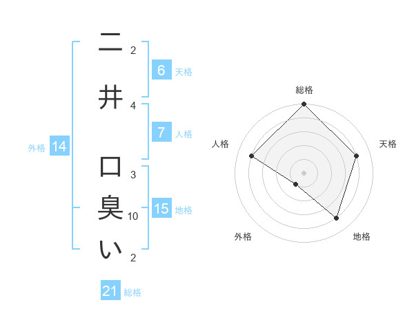 二井 口臭いさんを姓名の画数から五運を鑑定