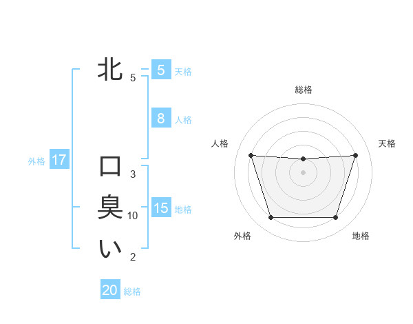 北 口臭いさんの外格は17画の4点!