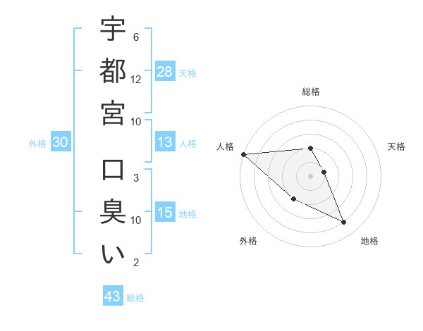 宇都宮 口臭いさんを姓名の画数から五運を鑑定