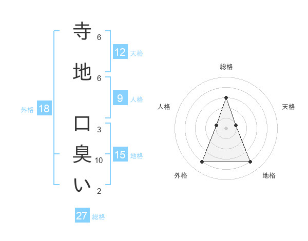 寺地 口臭いさんを姓名の画数から五運を鑑定