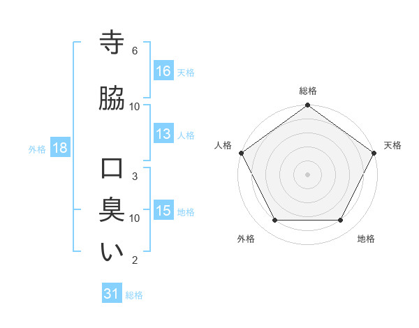 寺脇 口臭いさんの天格は16画の5点!