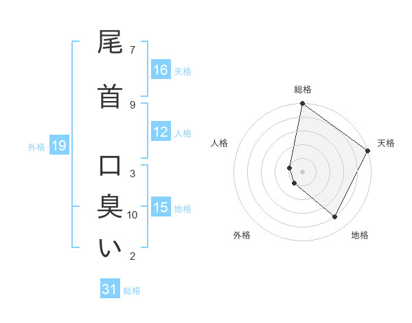 尾首 口臭いさんを姓名の画数から五運を鑑定