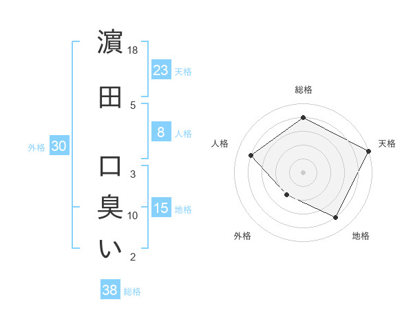 濵田 口臭いさんの天格は23画の5点!