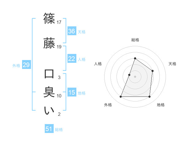篠藤 口臭いさんの総格は51画の3点!