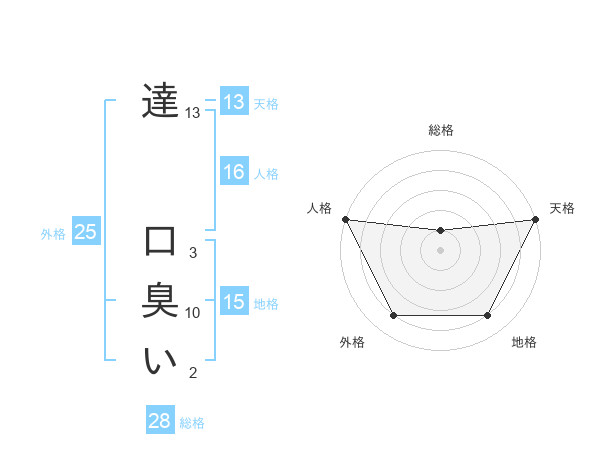 達 口臭いさんの天格は13画の5点!