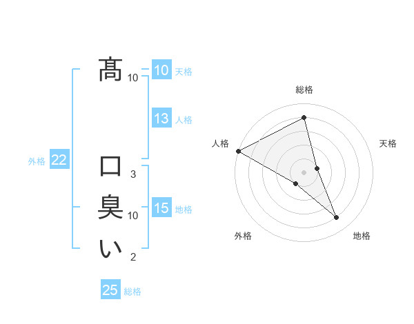 髙 口臭いさんの外格は22画の1点!