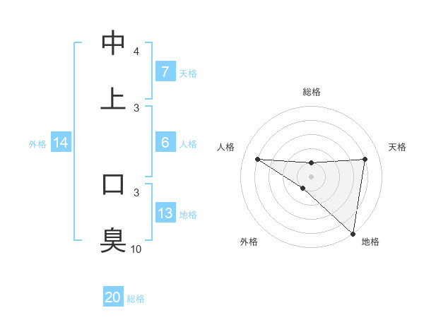 中上 口臭さんの総格は20画の1点!