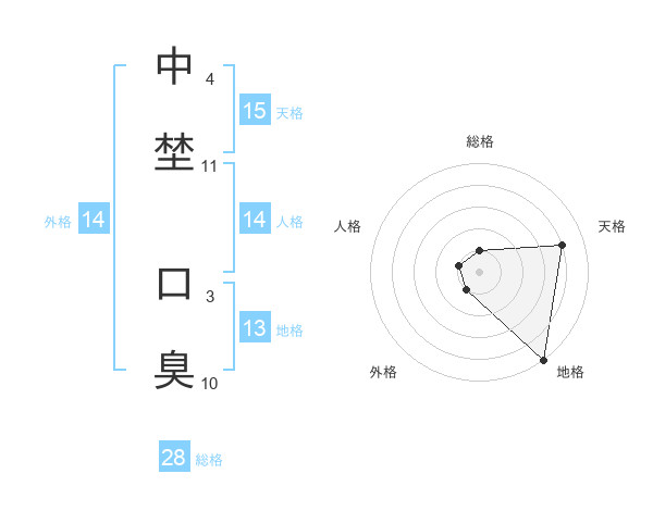 中埜 口臭さんの天格は15画の4点!