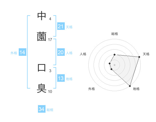 中薗 口臭さんの天格は21画の5点!