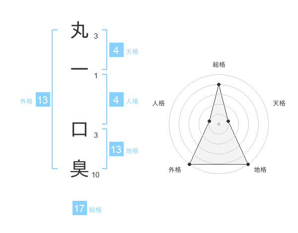 丸一 口臭さんの地格は13画の5点!