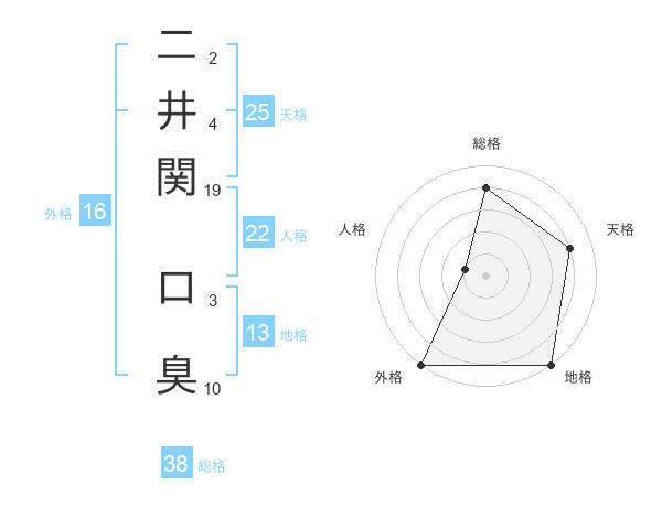 二井関 口臭さんの総格は38画の4点!