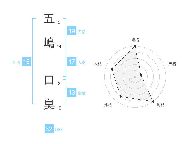 五嶋 口臭さんの総格は32画の5点!