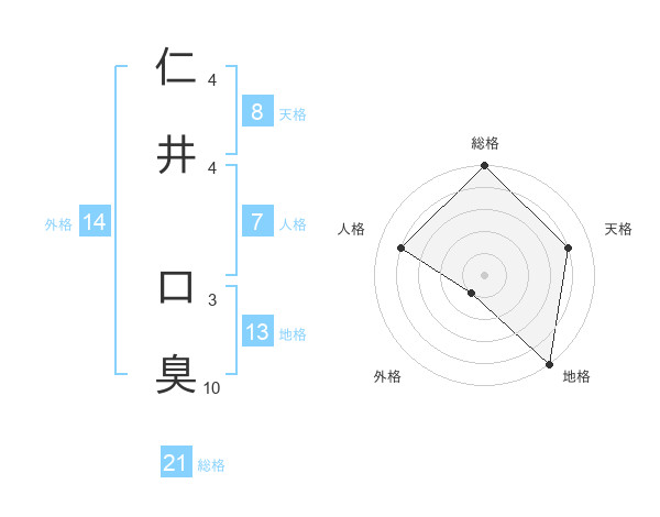 仁井 口臭さんの総格は21画の5点!