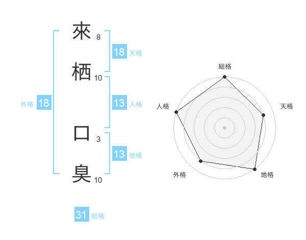 來栖 口臭さんを姓名の画数から五運を鑑定