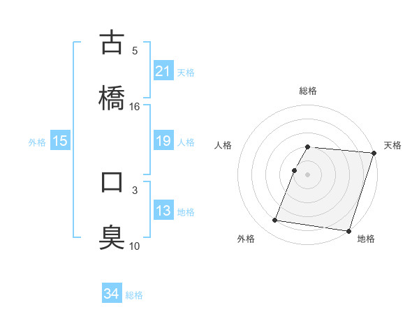 古橋 口臭さんを姓名の画数から五運を鑑定