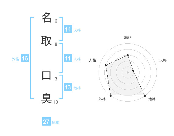 名取 口臭さんの外格は16画の5点!