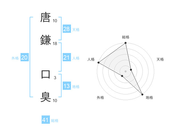 唐鎌 口臭さんの総格は41画の5点!