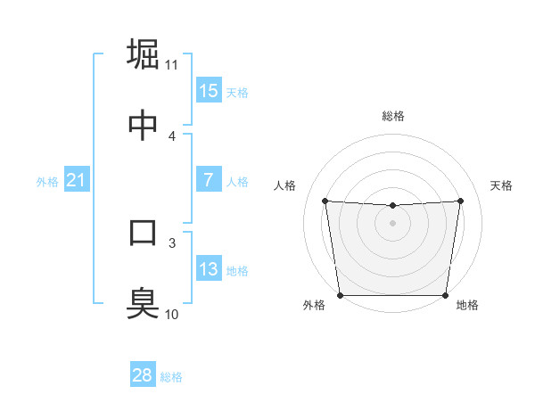 堀中 口臭さんを姓名の画数から五運を鑑定