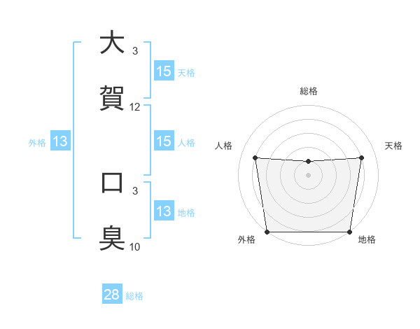 大賀 口臭さんを姓名の画数から五運を鑑定