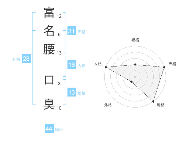 富名腰 口臭さんの総格は44画の2点!