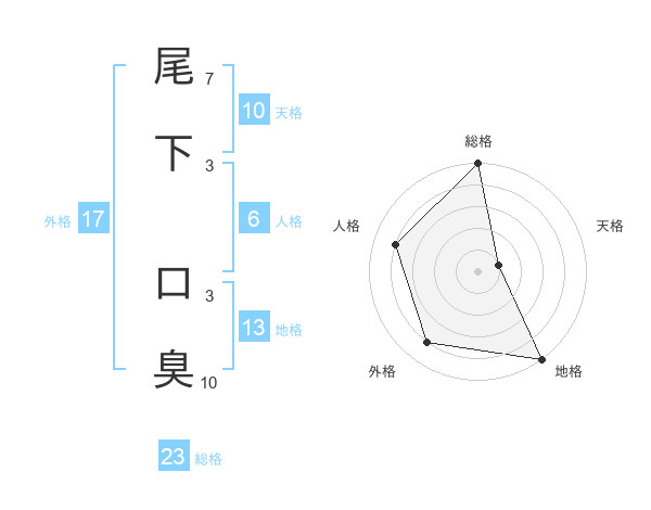 尾下 口臭さんの総格は23画の5点!