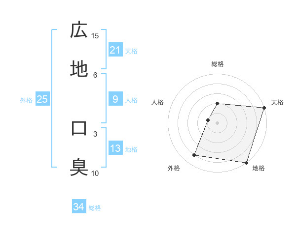 広地 口臭さんの地格は13画の5点!