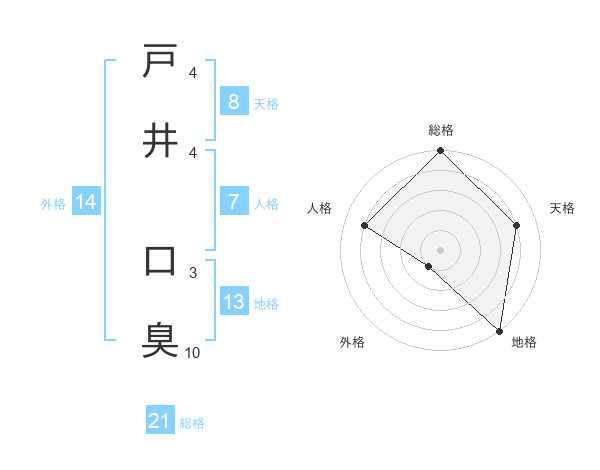 戸井 口臭さんの総格は21画の5点!