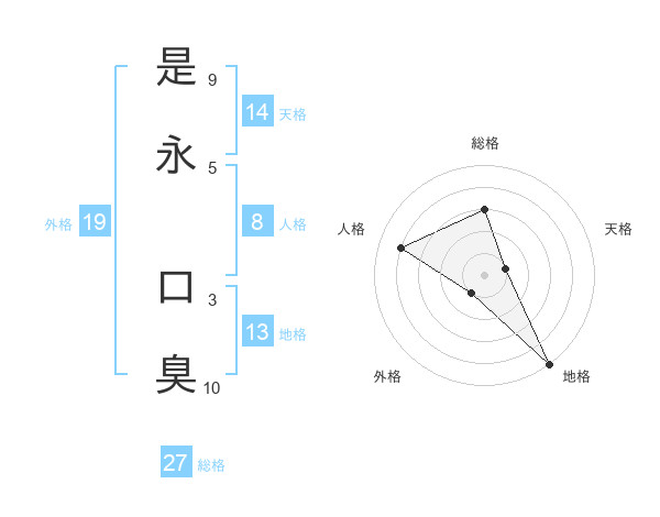 是永 口臭さんの地格は13画の5点!
