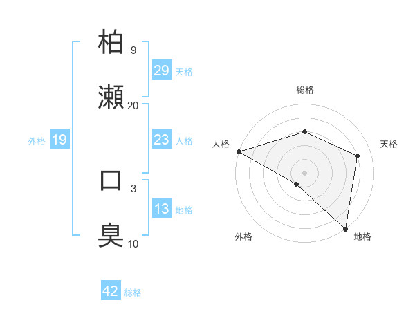 柏瀬 口臭さんの総格は42画の3点!