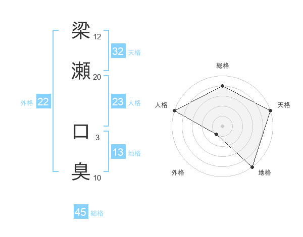 梁瀬 口臭さんを姓名の画数から五運を鑑定