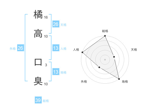 橘高 口臭さんを姓名の画数から五運を鑑定