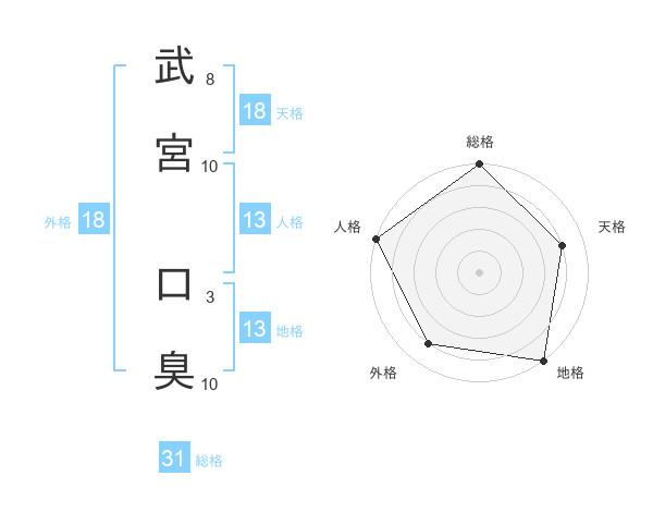 武宮 口臭さんの総格は31画の5点!