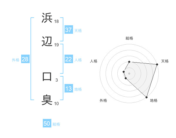 浜辺 口臭さんを姓名の画数から五運を鑑定