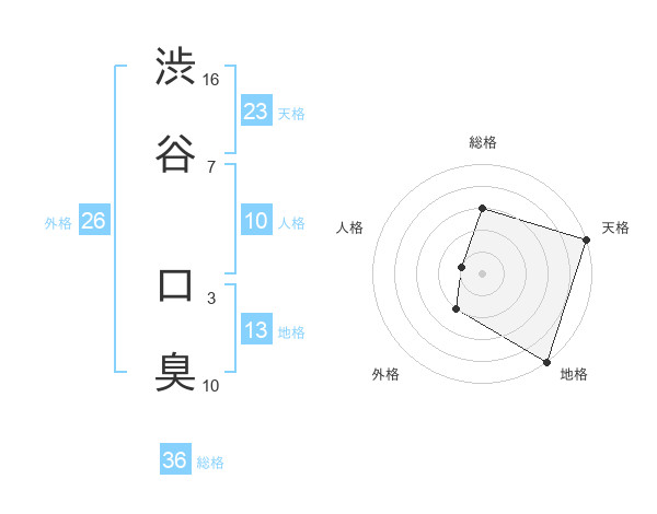 渋谷 口臭さんを姓名の画数から五運を鑑定