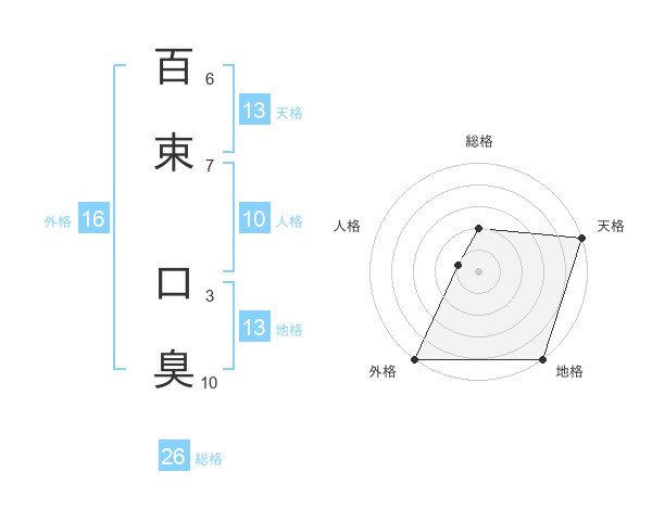 百束 口臭さんの天格は13画の5点!