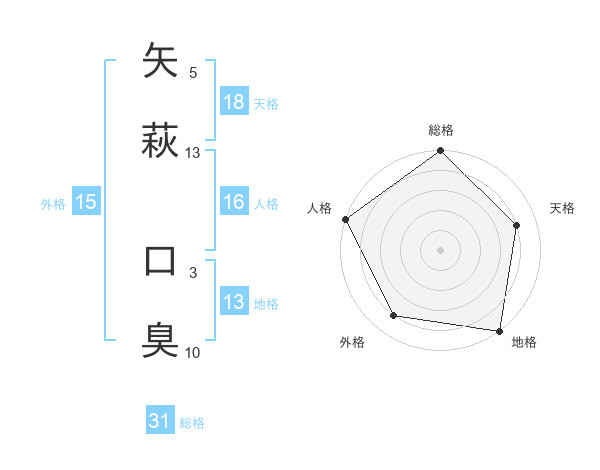 矢萩 口臭さんの総格は31画の5点!