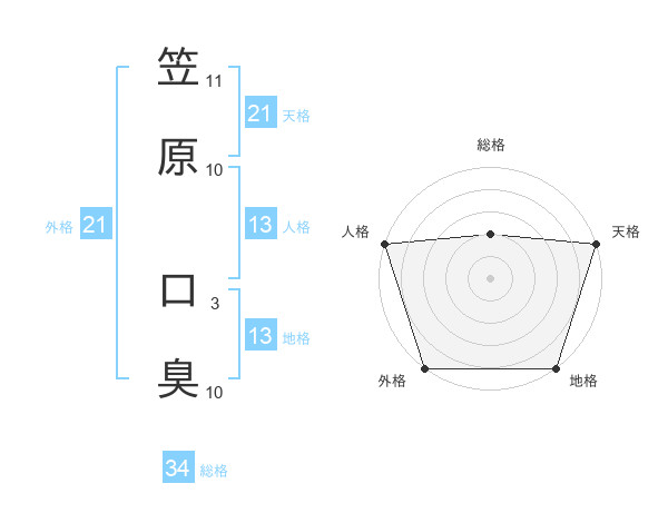 笠原 口臭さんの天格は21画の5点!