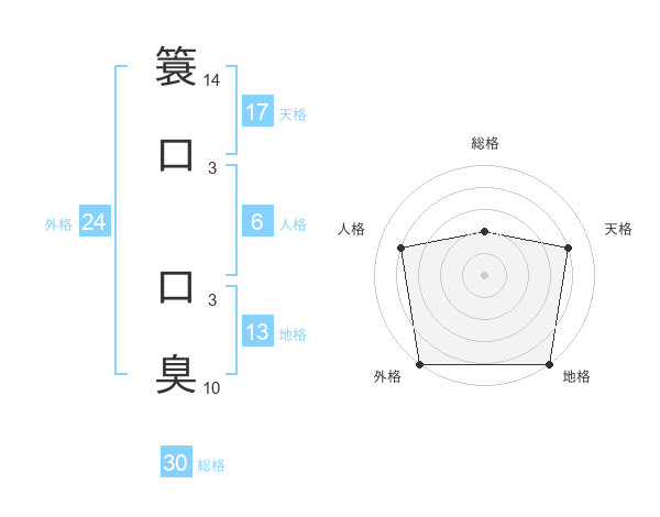 簑口 口臭さんの総格は30画の2点!