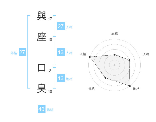 與座 口臭さんの地格は13画の5点!